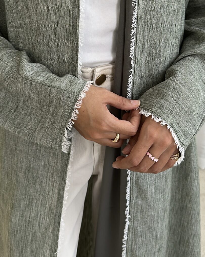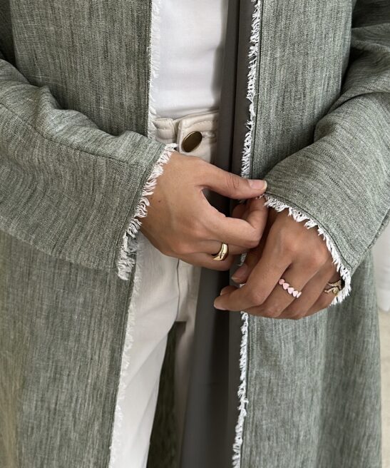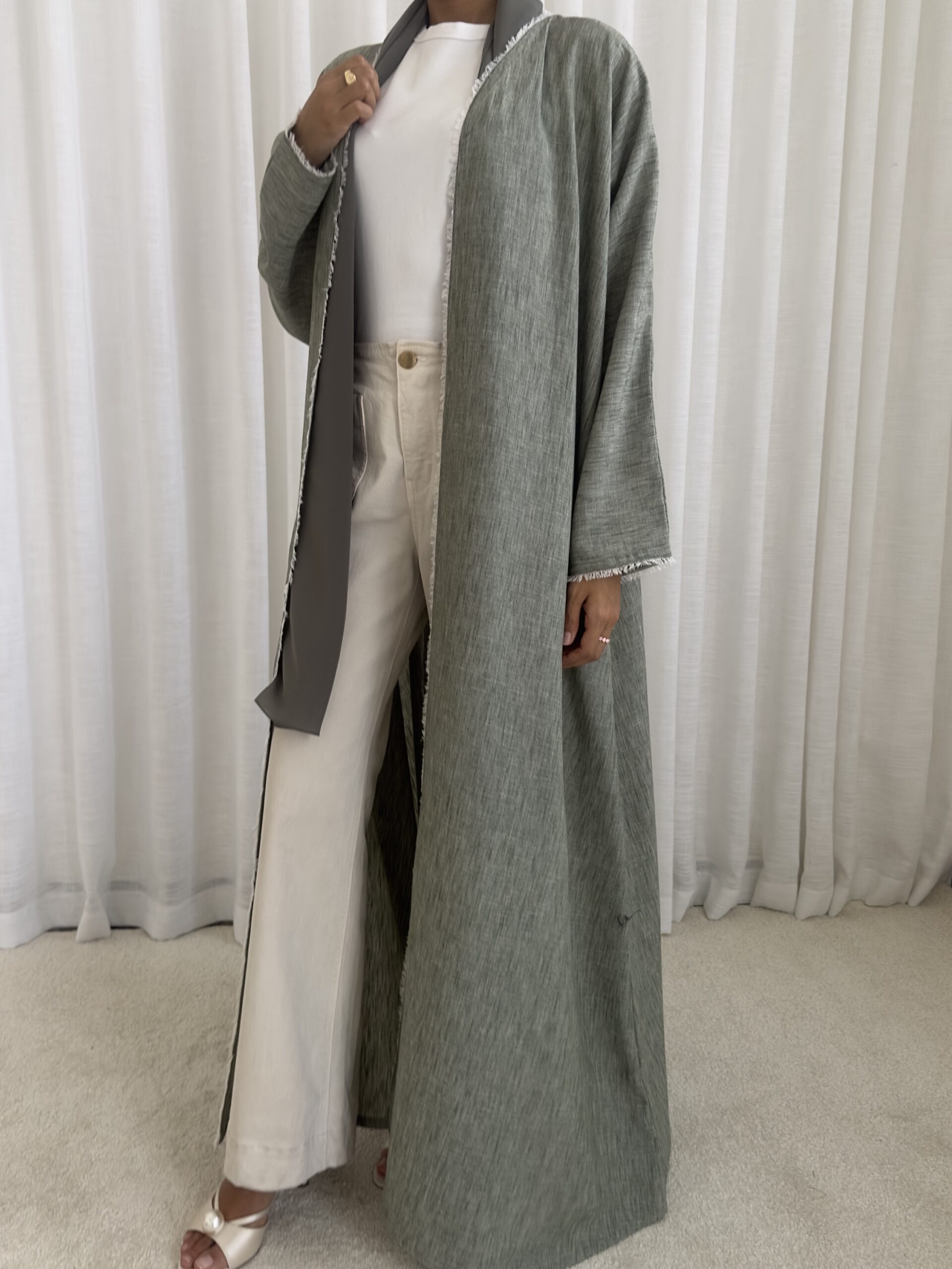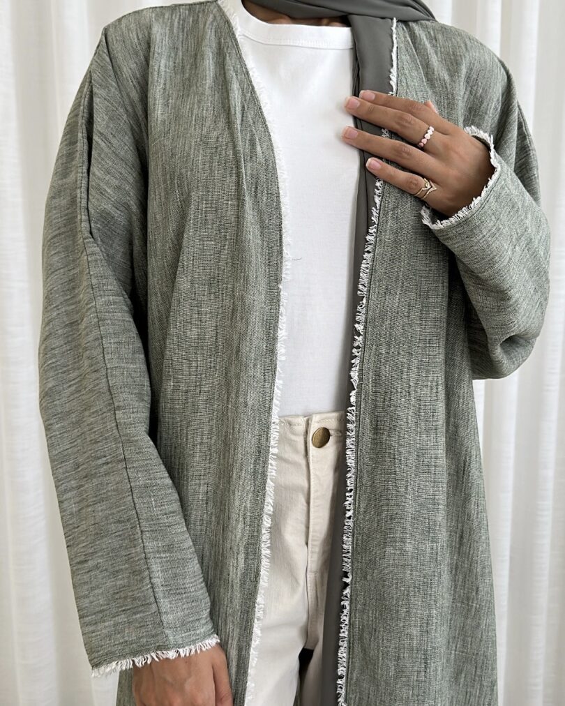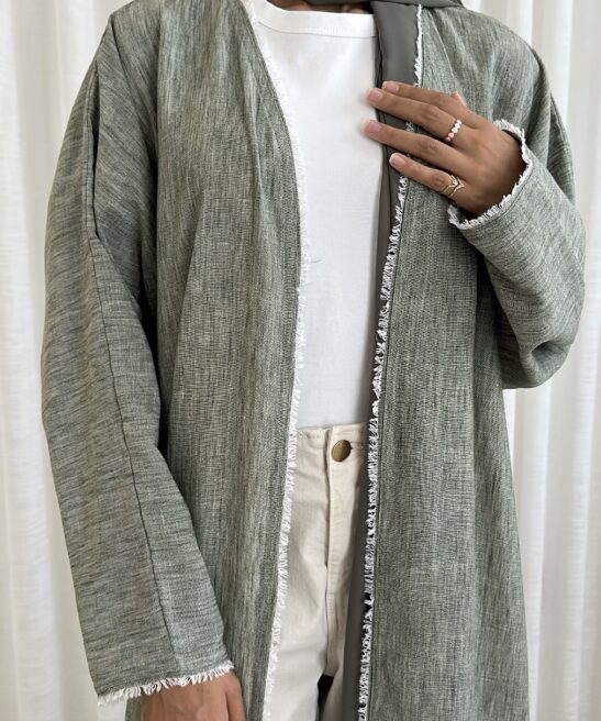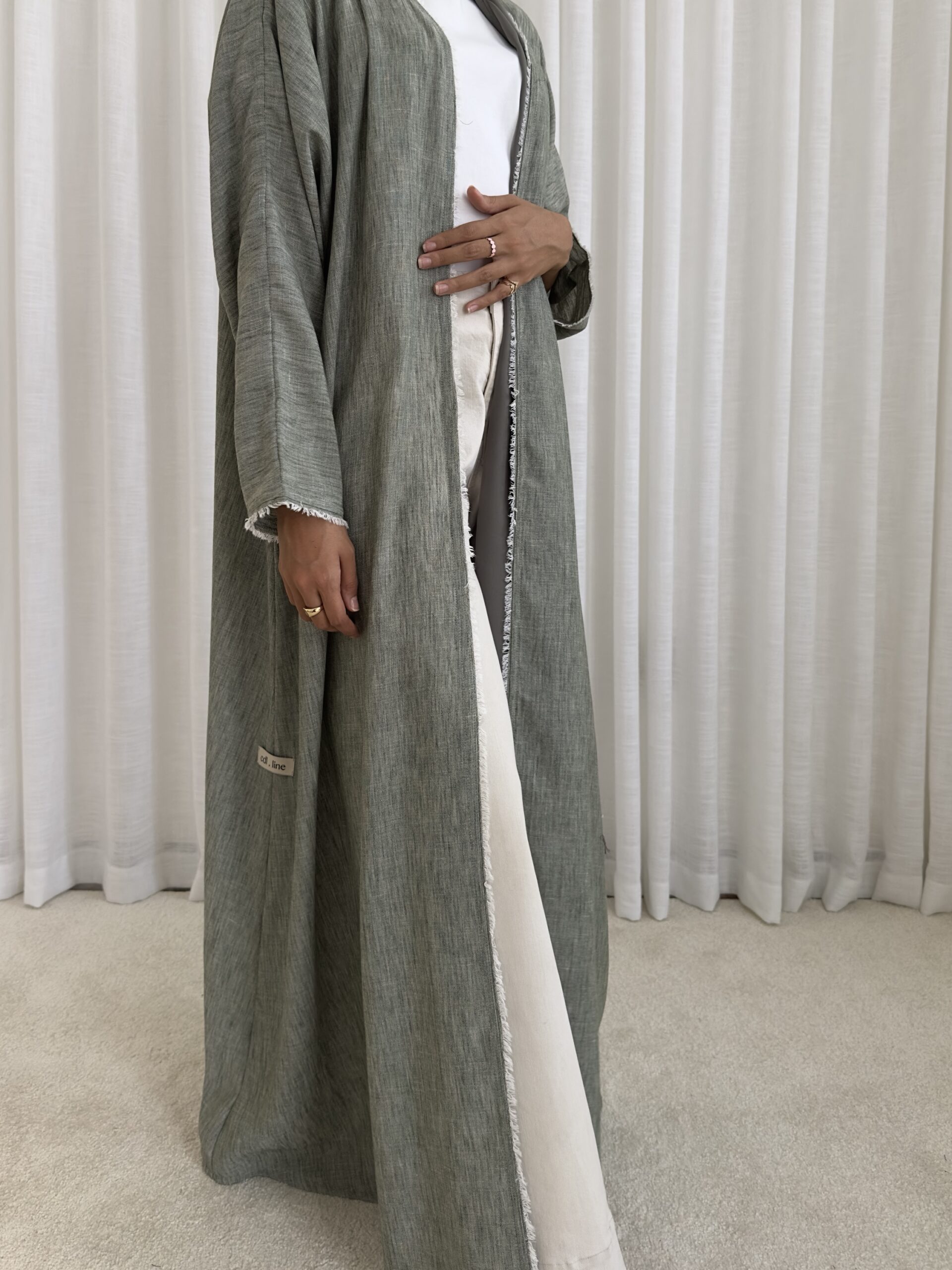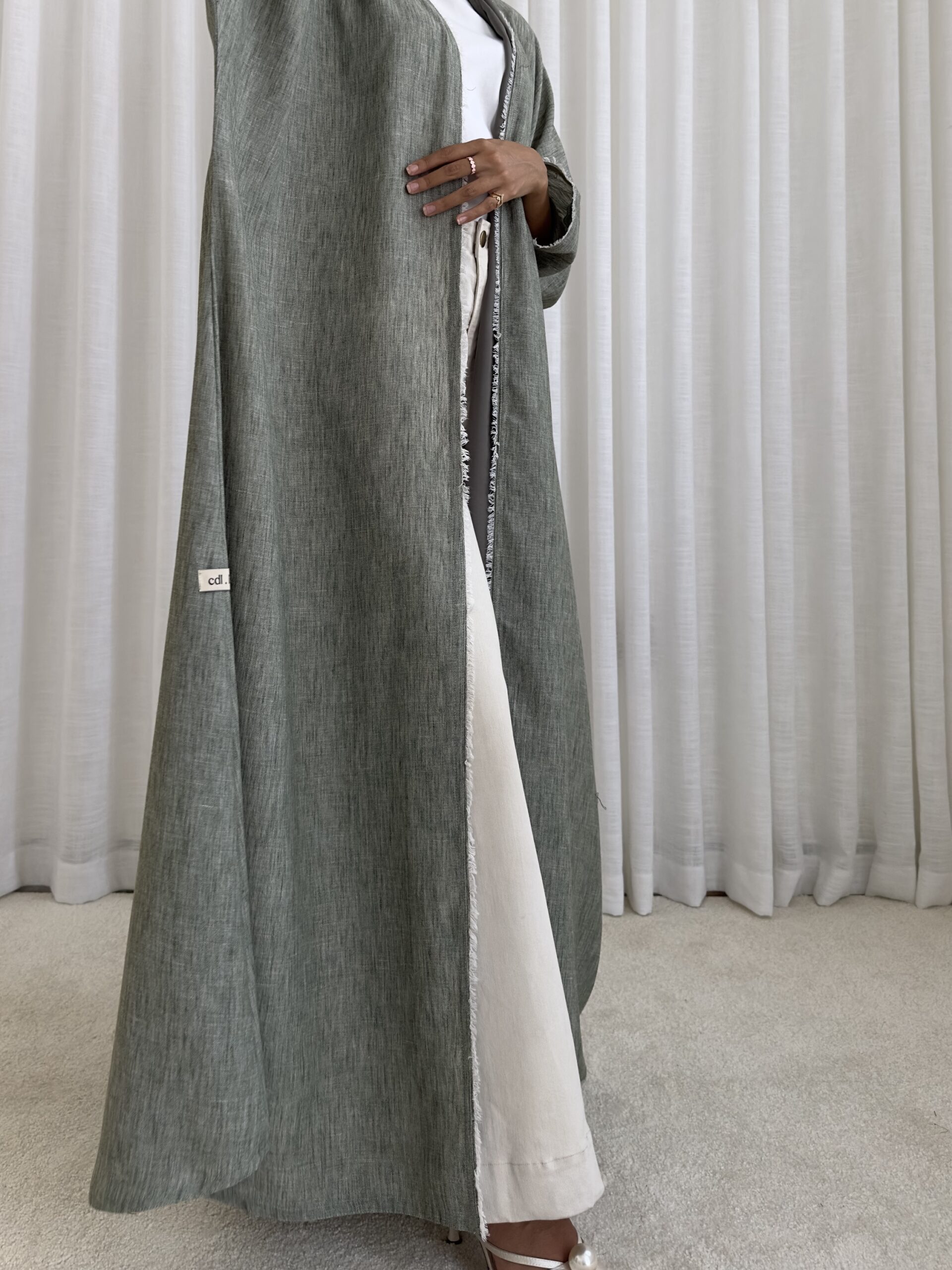 Linen half bisht abaya designed for a relaxed yet refined look.