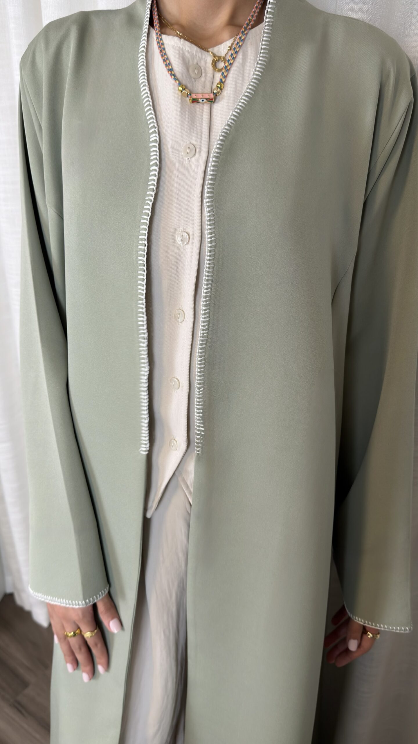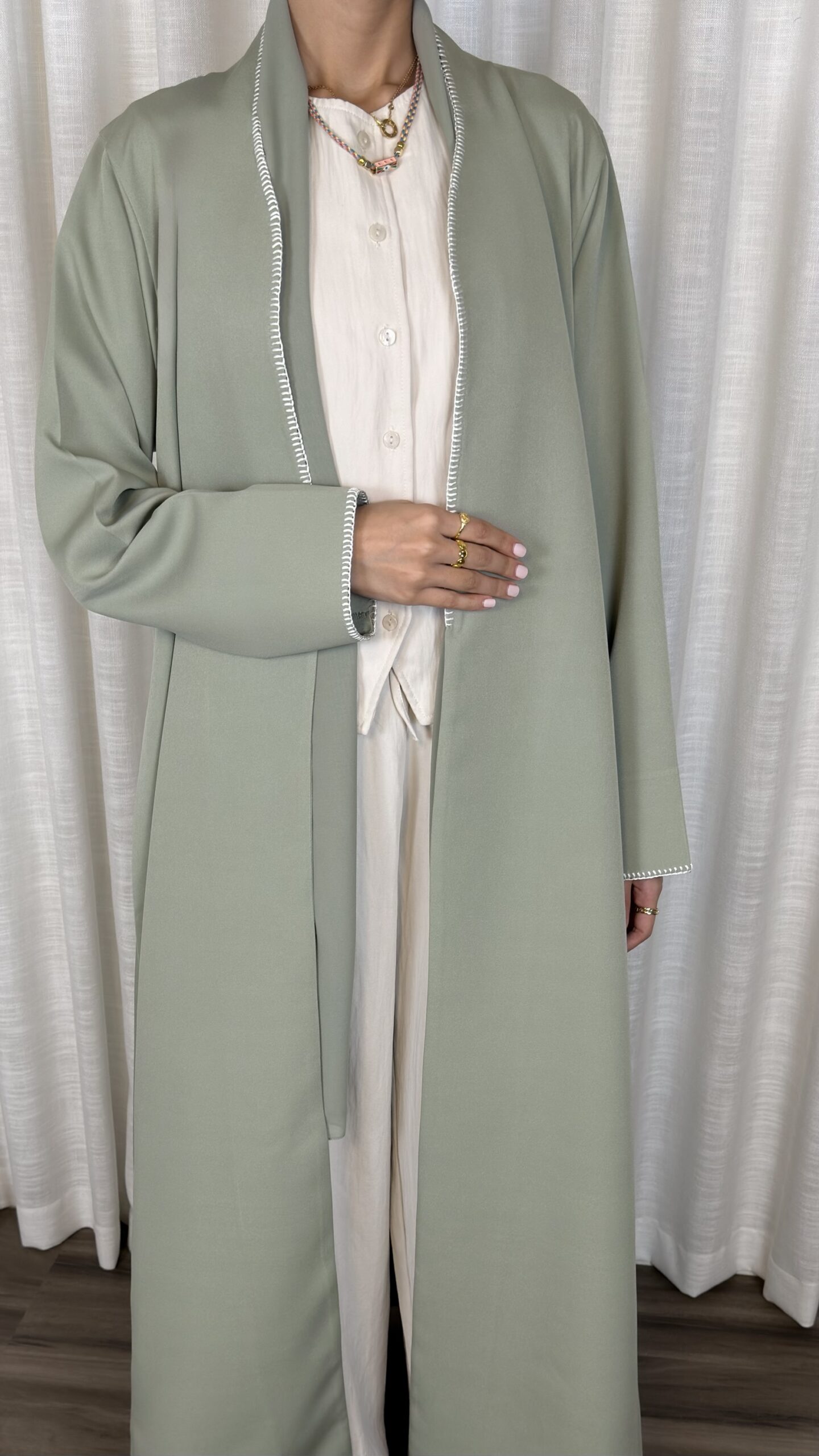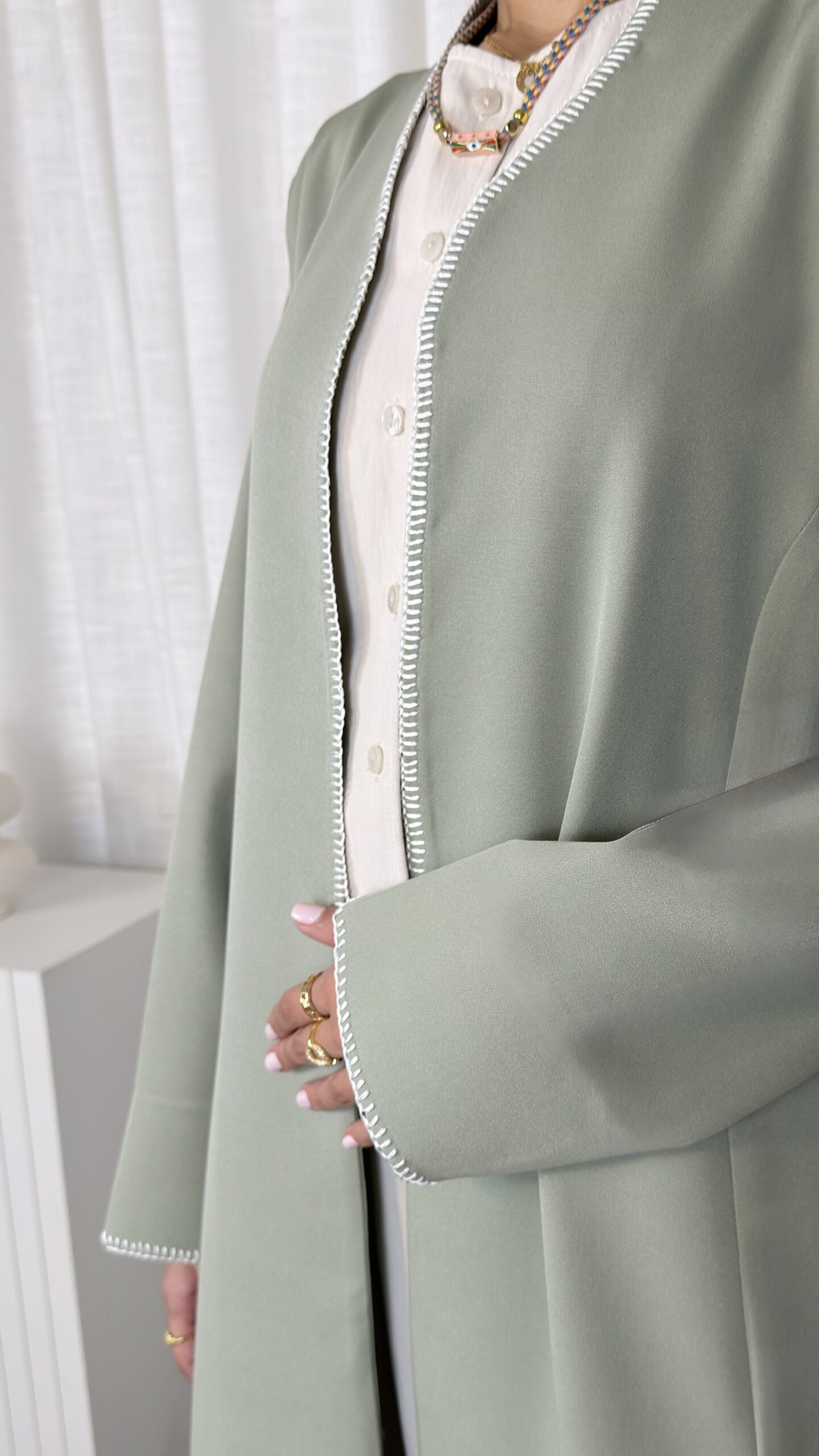 - Hand-stitched detailing on edges