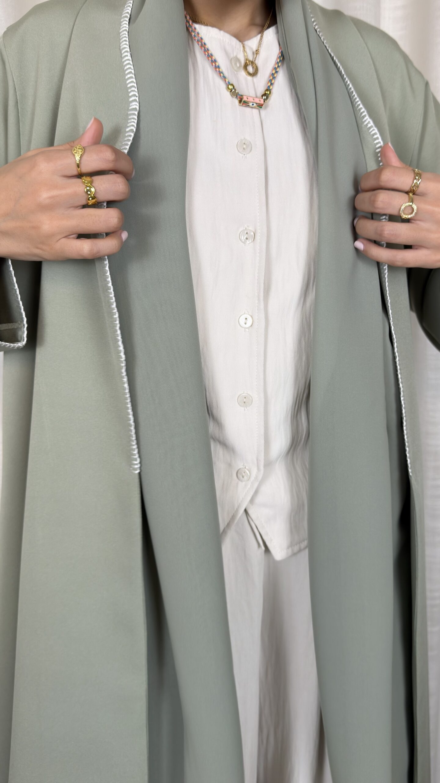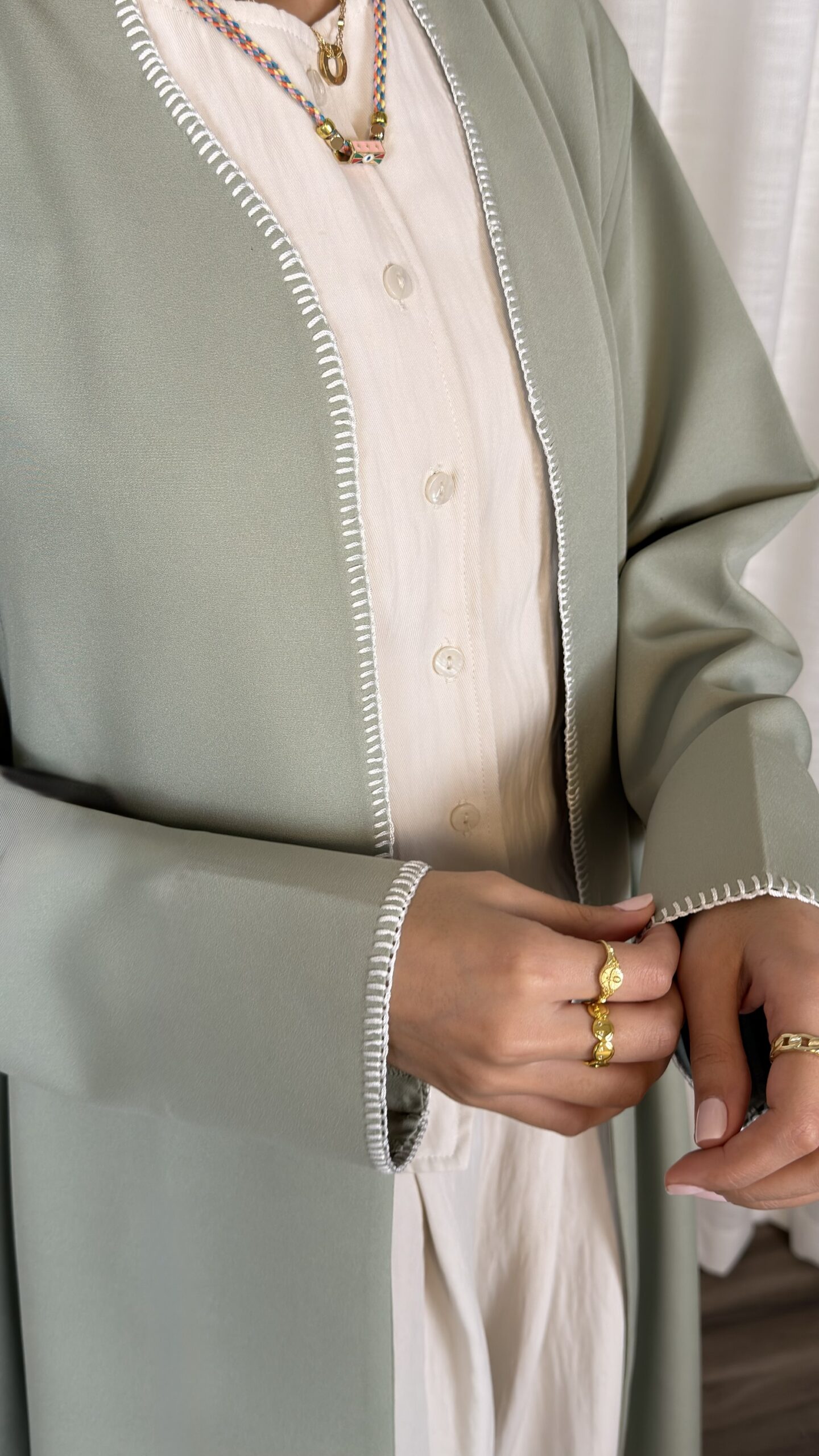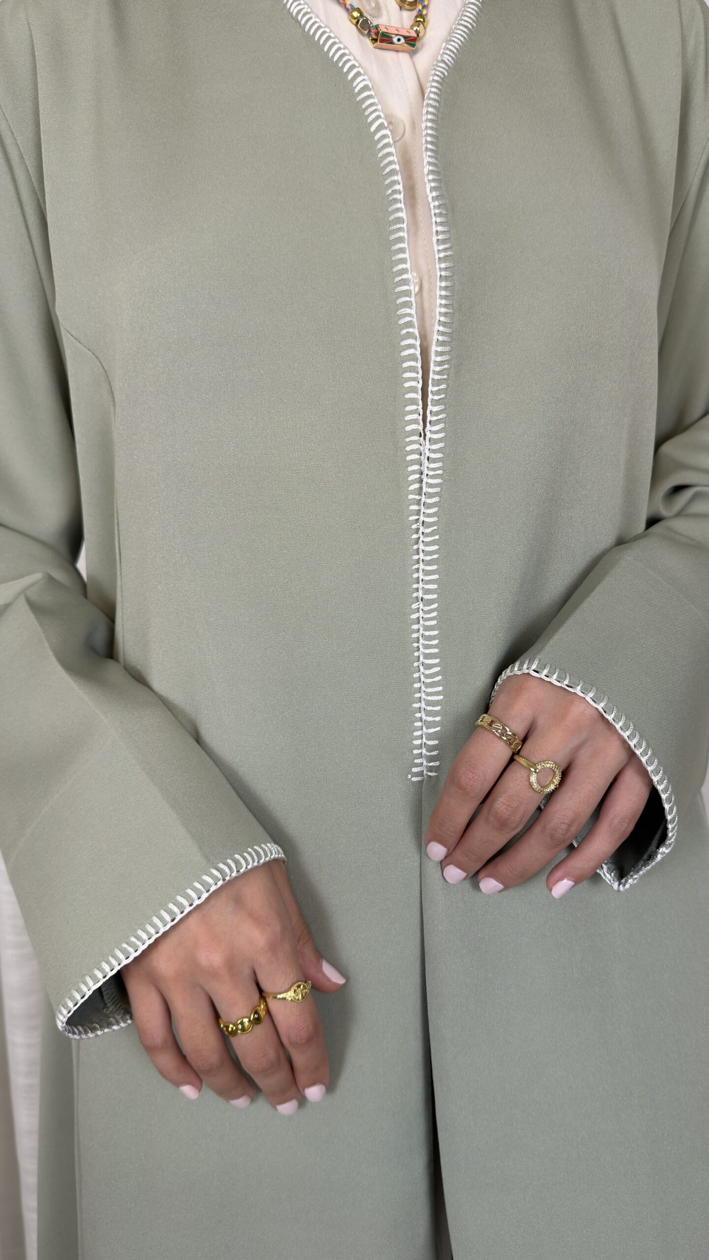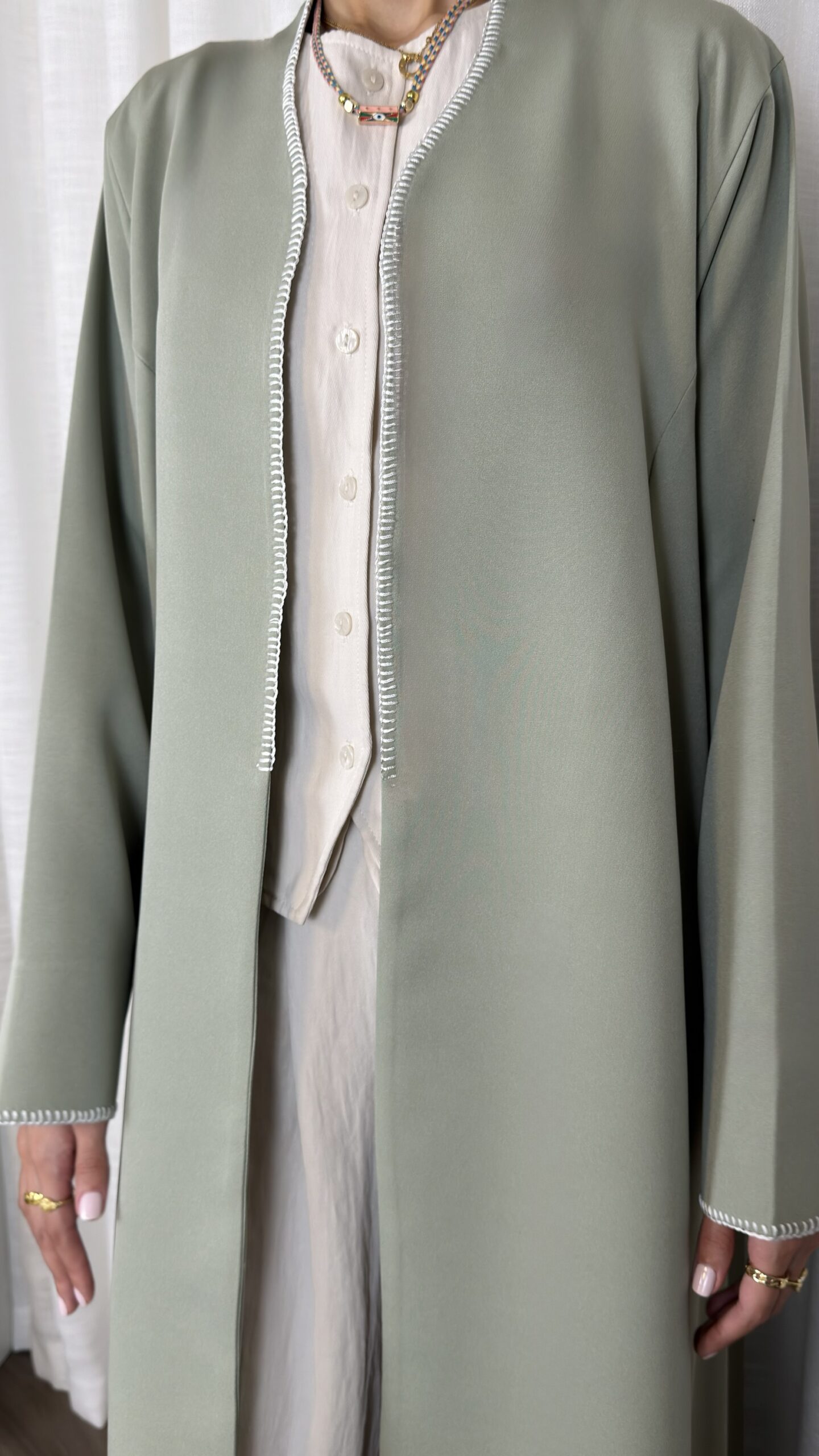- Hand-stitched detailing on edges